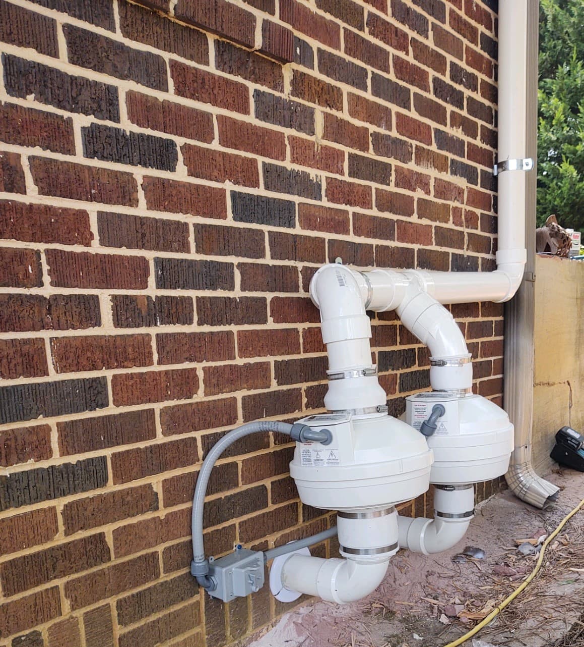 Waterproofing systems in homes (i.e., channel drains) can serve as pathways for radon. When we are performing diagnostics, if radon levels are shown to be in the channel drain, we will core a 5-inch hole through the slab in a location around it. The radon vent pipe will then be insterted where it will touch the corrugated pipe below the slab. This allows the air below the slab in the channel drain to be pulled into the mitigation system.